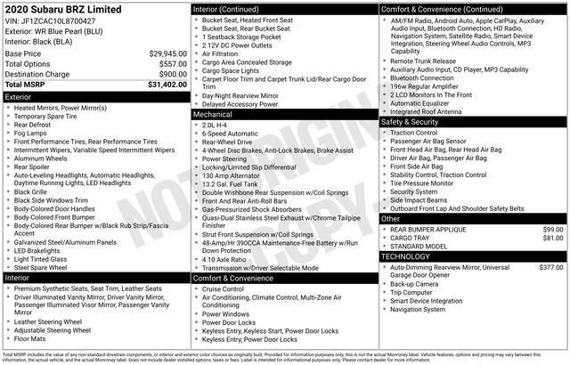 2020 Subaru BRZ Limited Sporty, Clean, and Well-Equipped