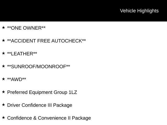 **ONE OWNER**, **ACCIDENT FREE AUTOCHECK**, **LEATHER**, **SUNROOF/MOONROOF**, **AWD**, AWD, Adaptive Cruise Control, All-Weather Floor Liners (LPO), Automatic Front & Rear Parking Assist, Cargo Package (LPO), Confidence & Convenience II Package, Driver Confidence III Package, Driver Convenience II Package, Floor Liner Package (LPO), Front Passenger 8-Way Power Seat Adjuster, HD Surround Vision, Heated Rear Outboard Seating Positions, Integrated Cargo Liner (LPO), Power Liftgate, Power Sunroof, Preferred Equipment Group 1LZ, Retractable Cargo Shade, Ventilated Driver Seat, Ventilated Front Passenger Seat, Vertical Cargo Net (LPO).